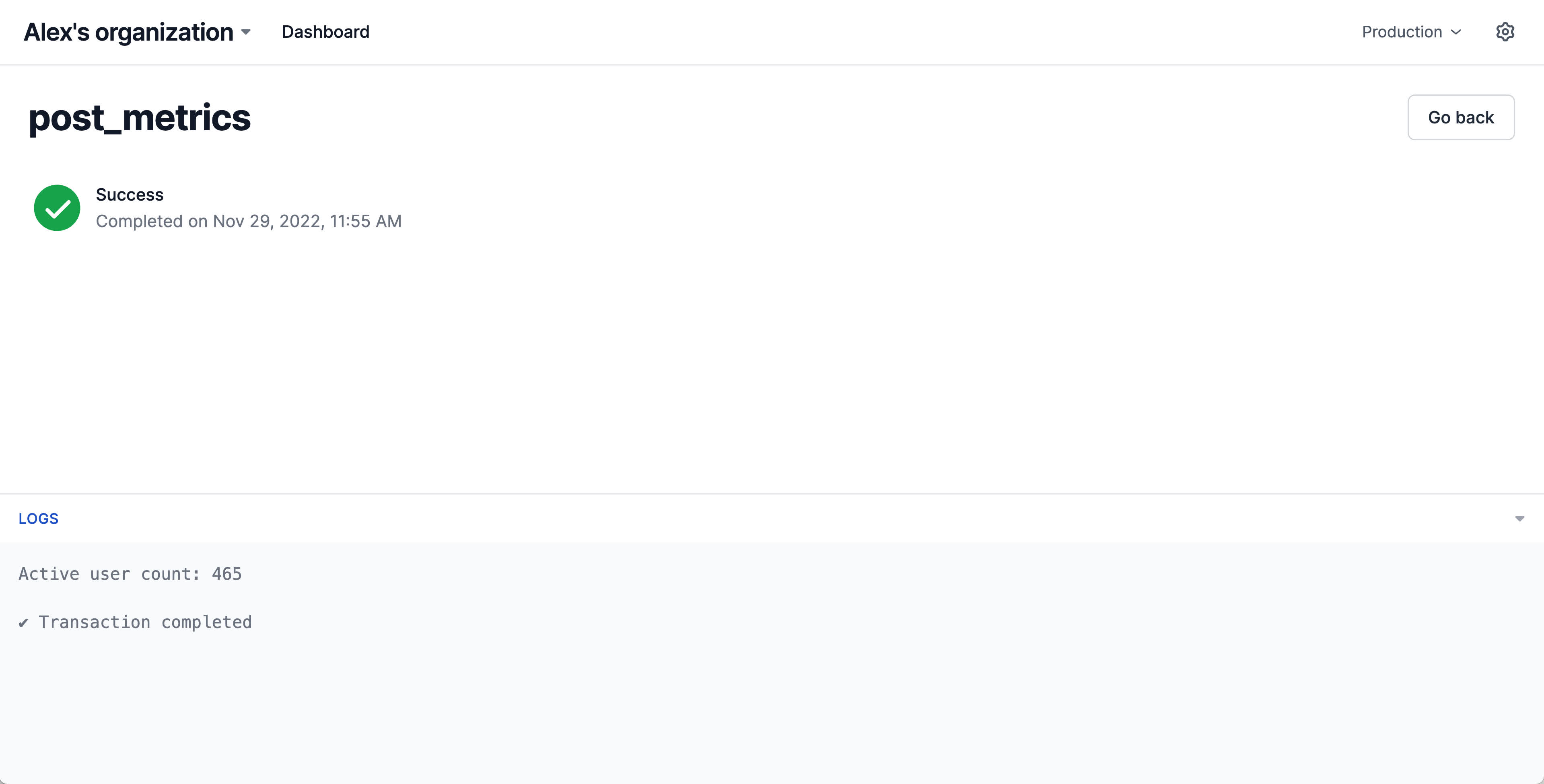 First, we'll add our queries to a basic Interval action and simply log the output. When building tools with Interval, it's often useful to leverage ctx.log for debugging and getting a better idea of the data available to you.