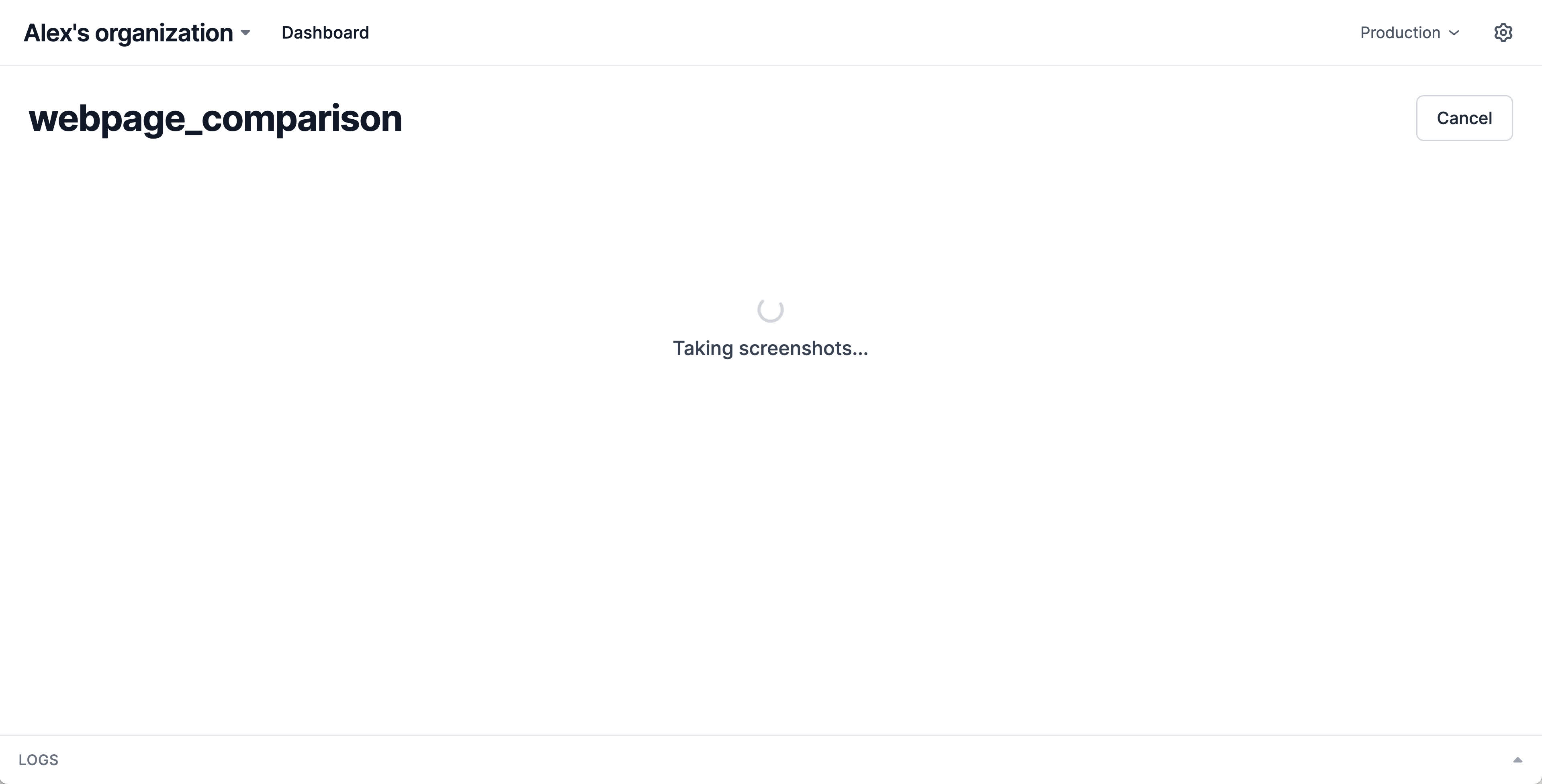 We'll rely on a few libraries to implement most of the logic to implement the screenshot comparison. First we'll pass the urls provided to Puppeteer to load them in a headless browser and take full page snapshots for each. Since this takes a few seconds, we'll also add a loading spinner with context on what's happening.